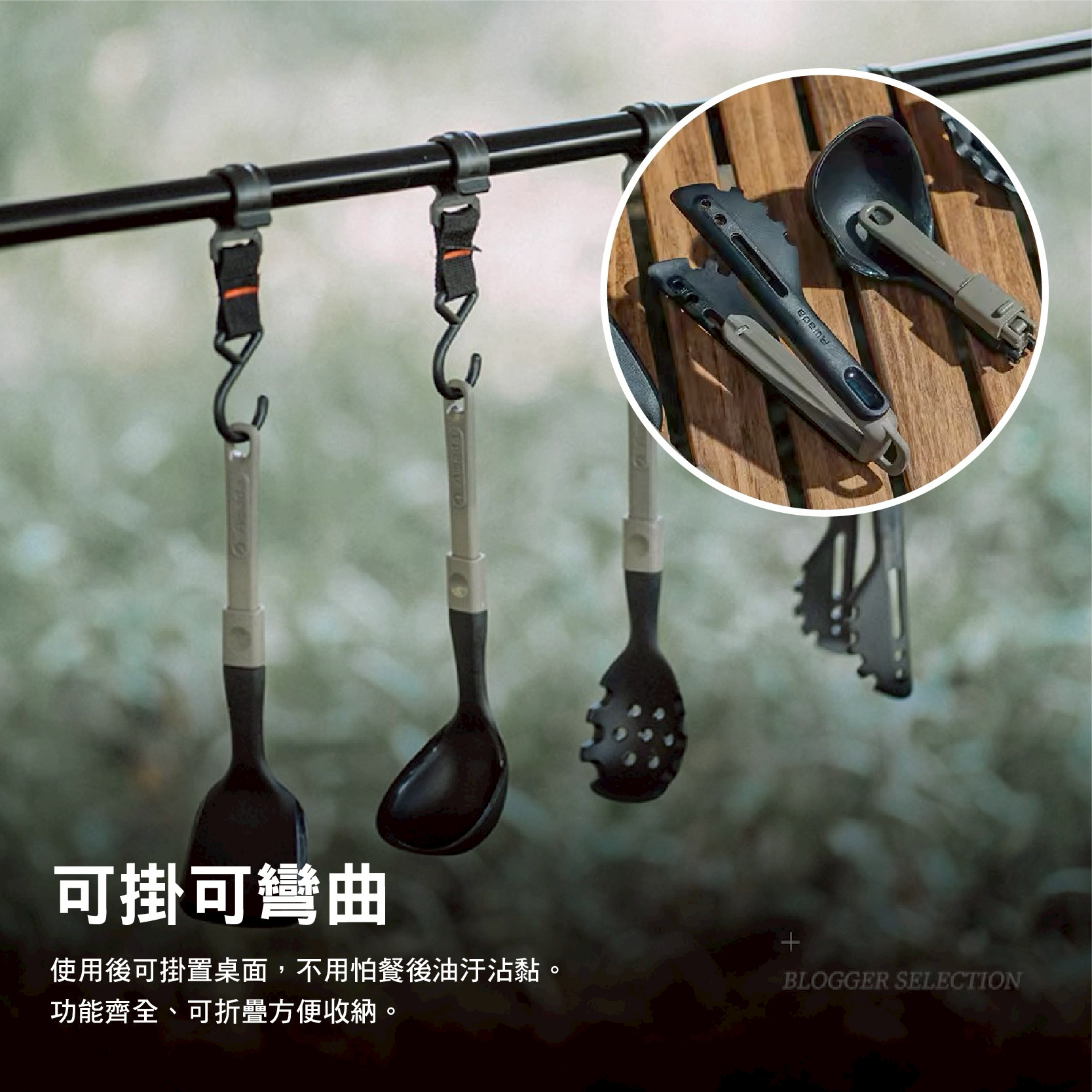 一折就收,一掛就用,露營用餐更乾淨!