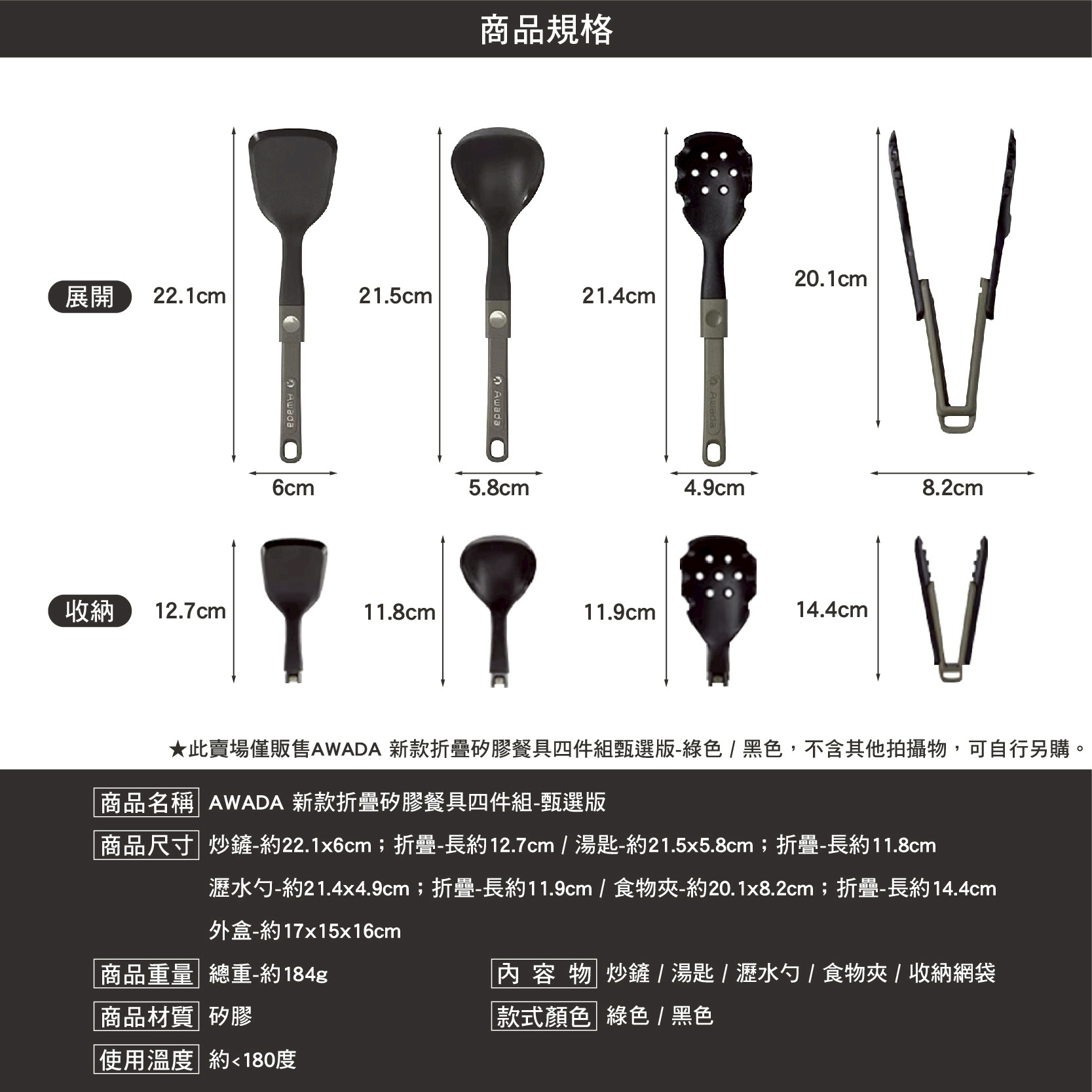 【AWADA】新款折疊矽膠餐具四件組 甄選版-2色