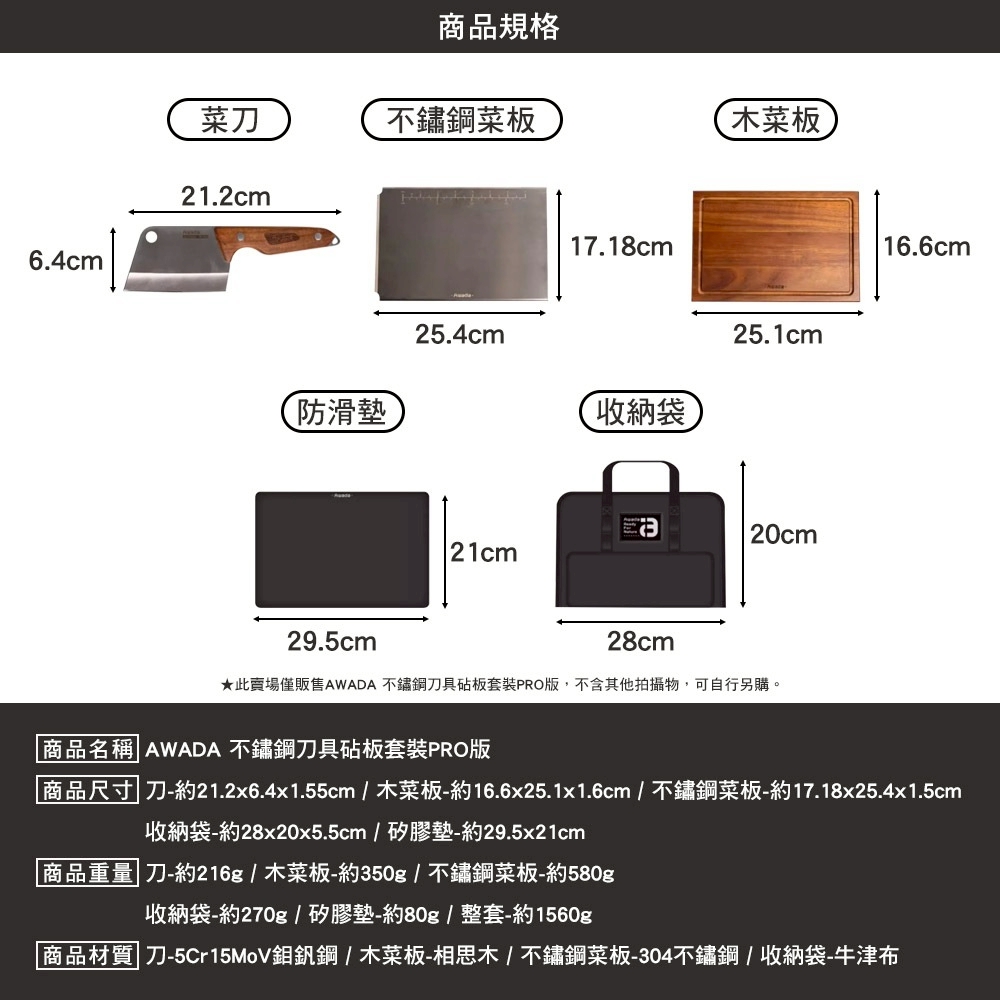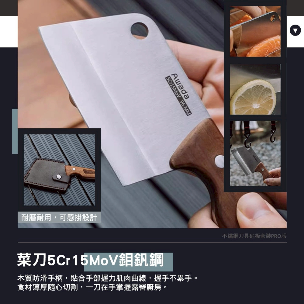【AWADA】不鏽鋼刀具砧板套裝PRO版