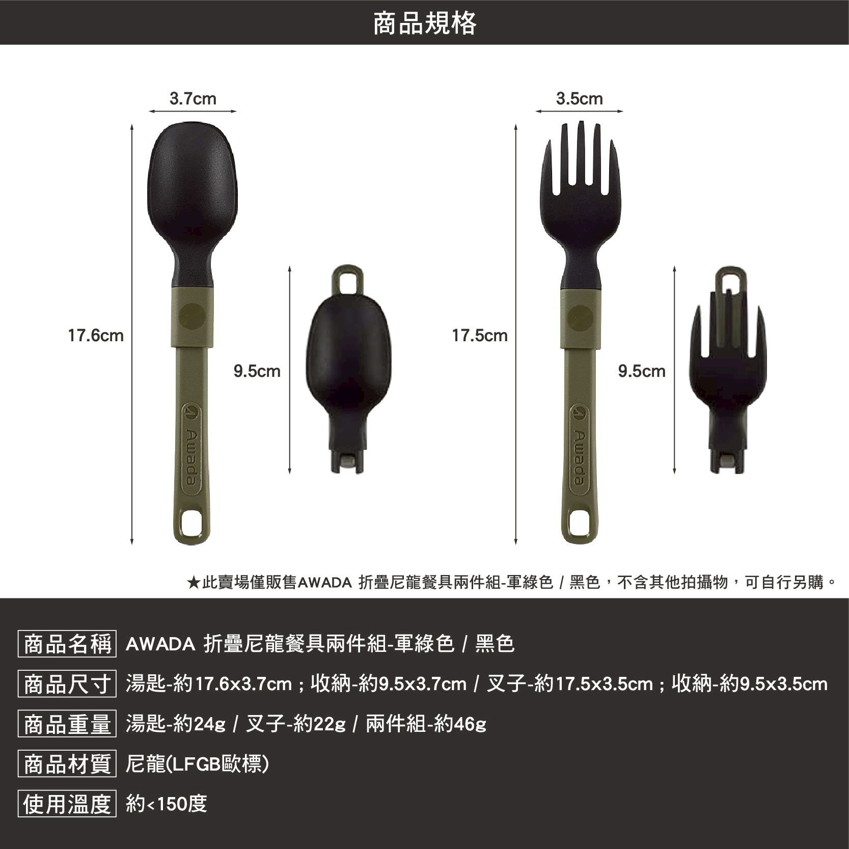 【AWADA】摺疊尼龍餐具兩件組-2色