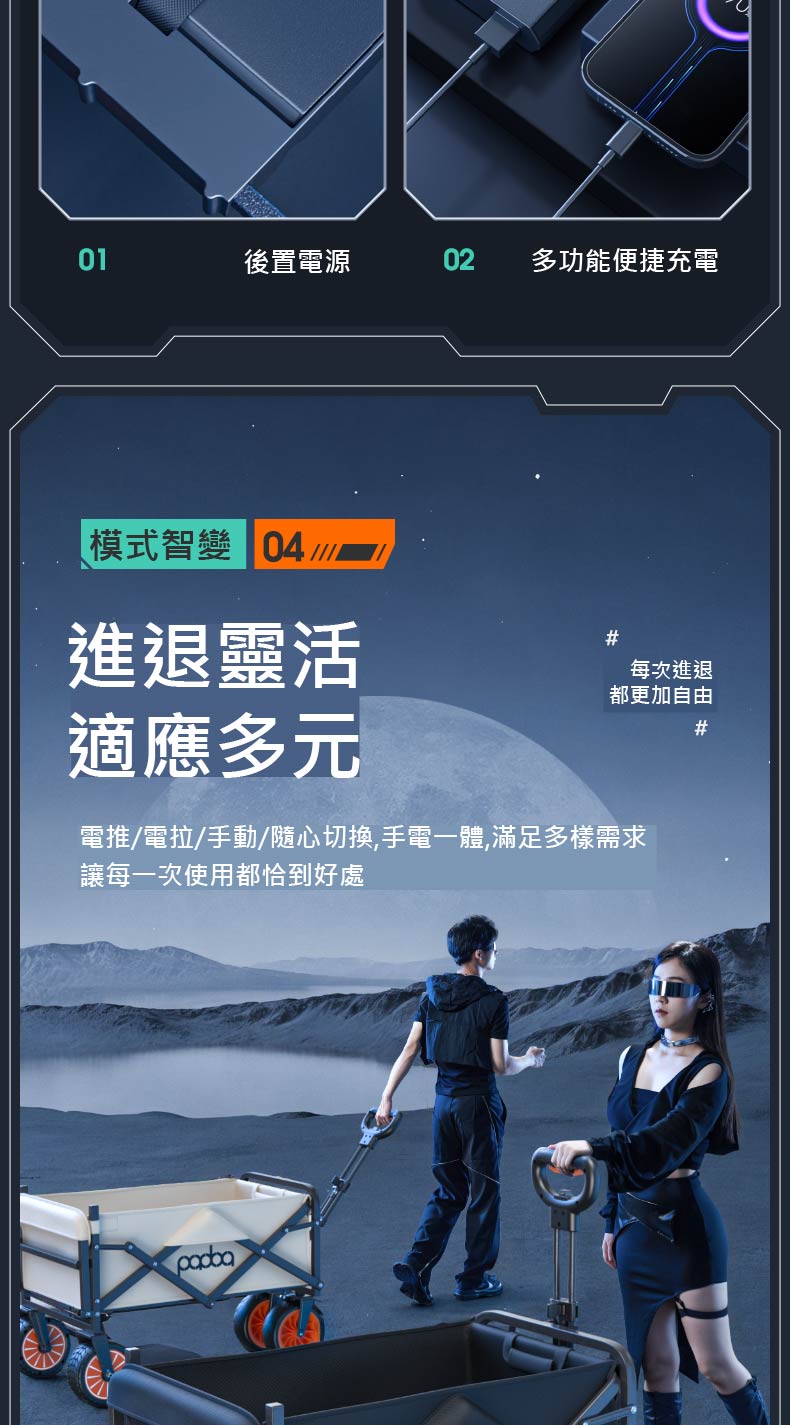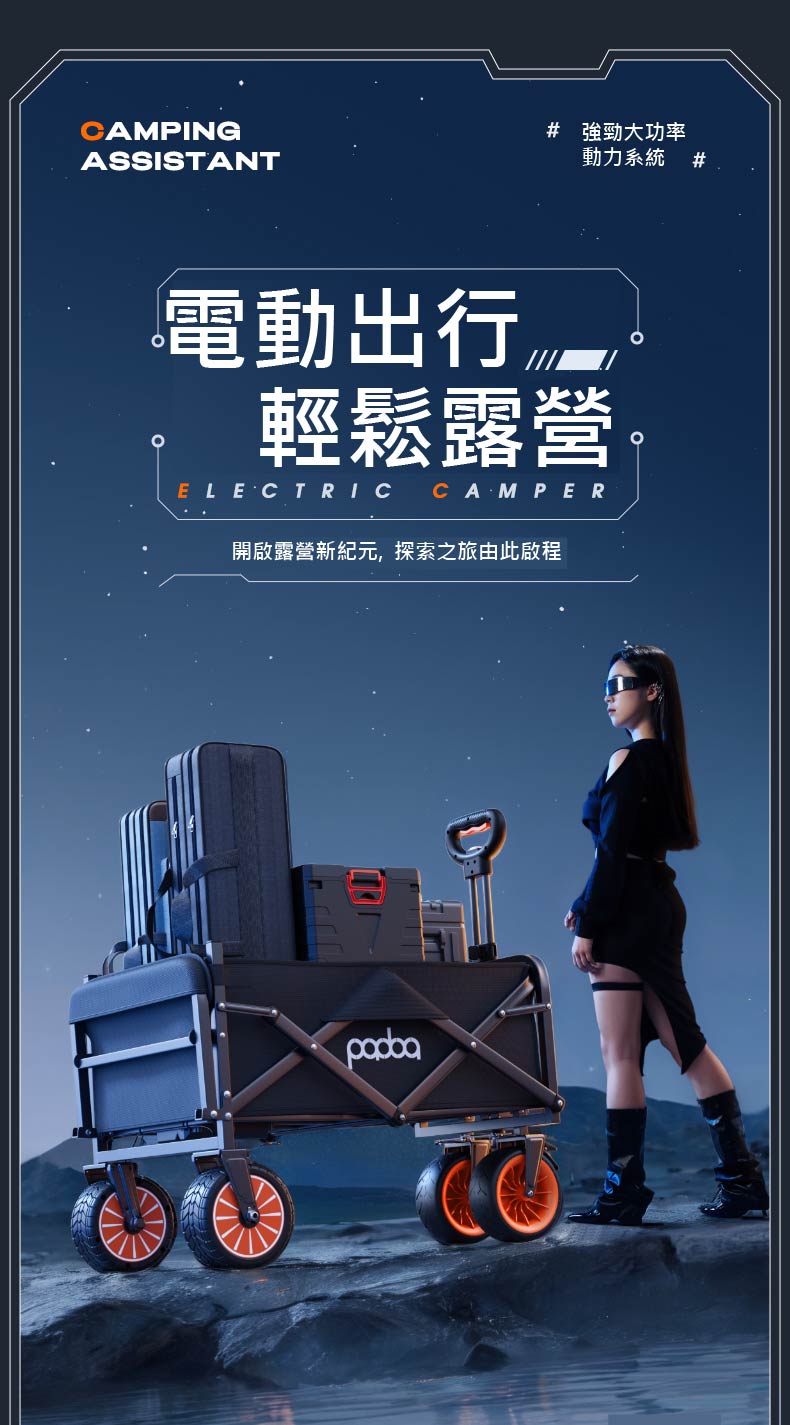電動露營手推車(後開款)+ 遮陽棚+蚊帳+雨罩