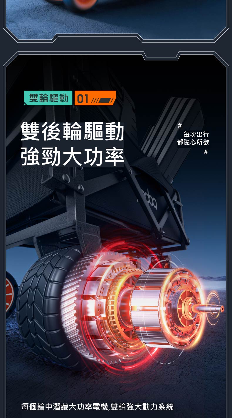 雙後輪驅動,進退靈活